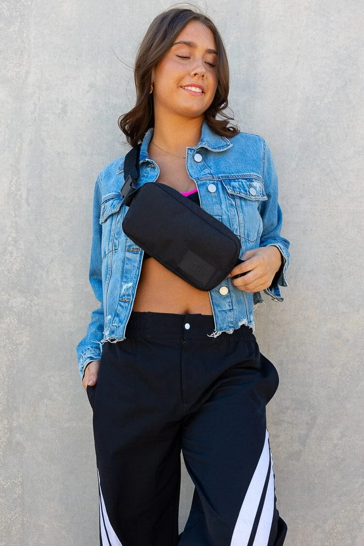 -Tone on tone branded webbing removable strap with plastic clip on ends.